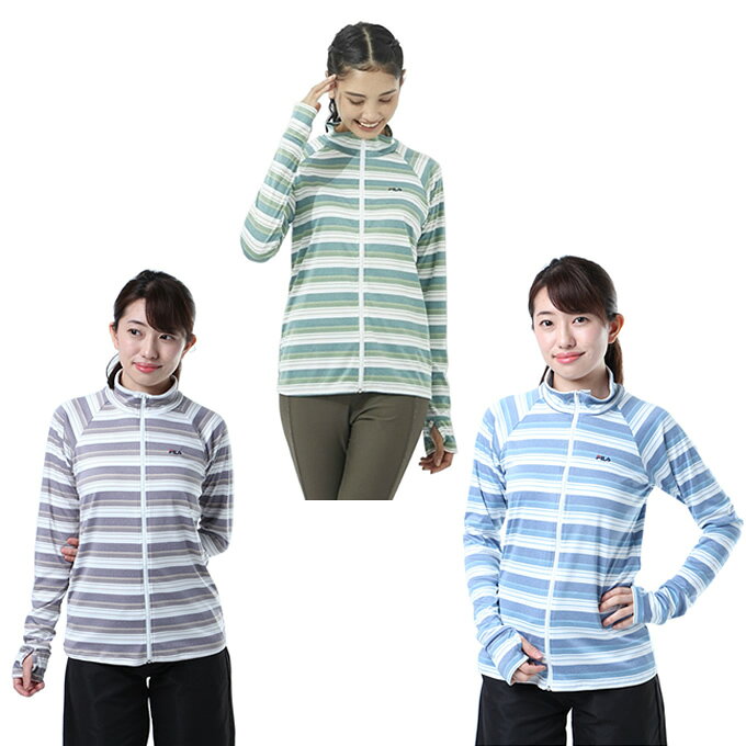 再入荷 ラッシュガード レディース ブロックメッシュ フルジップ 長袖 ハイネック UVカット FILA フィラ