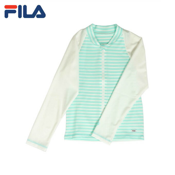 ラッシュパーカー ラッシュガード レディース 水着 体型カバー fila フィラ ジュニア M L LL ボーダー柄 フィットネス ジム スポーツ 可愛い お洒落 ママ水着 ジュニア プール 海 水遊び UVカット 紫外線対策